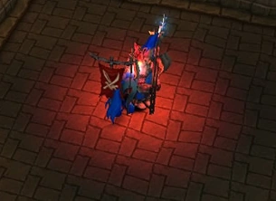 Going with the original icon, Dene Carter, in his Diary, describes the original Call to Arms animation as a trio of skeletons bursting forth from the earth (it is unknown if these were actual Skeletons, but it seems improbable), each playing a horn.[2] It is unknown why this was changed, and there is no known footage of it or any trace of it in the final game's data.