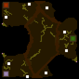 Cosy corners is a multiplayer level in Dungeon Keeper. It is in the game, but unnamed and inaccessible unless it's added to LEVELS.txt (Dungeon Keeper) or DD1Lev.txt (The Deeper Dungeons). It has been made accessible and given its name in Dungeon Keeper FX. The objective is to destroy all enemy Keepers.